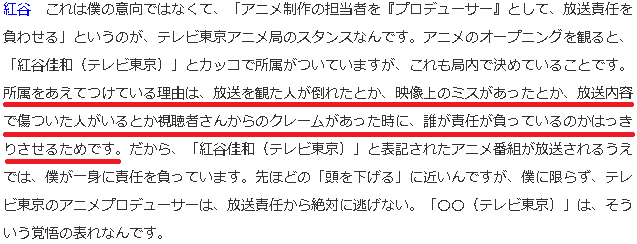 法に触れているのではという質疑の答えになっていない事に加え「クリエイターを大事にしているつもり」という返答に即座に矛盾する内容であった為ファンの不興を買うと共に、責任を製作委員会に転嫁する形となった。